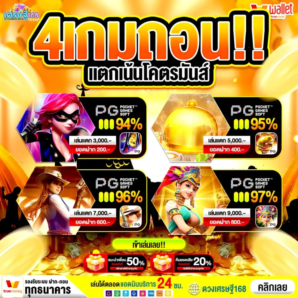 ทุกคนรู้ว่าโหมด ทดลองเล่น PG มีไว้ให้ซ้อม แต่คุณรู้หรือไม่ว่ามี “เกมลับ” บางเกมที่แตกง่ายเป็นพิเศษ ซึ่งถูกซ่อนไว้ หรือไม่ได้ถูกโปรโมตให้ปรากฏในหน้า ทดลองเล่น ทั่วไป ด้วยเหตุผลทางกลไกของเกมวงล้อเอง เราจะมาเปิดเผย 4 เกมวงล้อสุดซ่อนเร้นของ PG ที่คนวงในเท่านั้นถึงจะรู้และมุ่งไปกวาดเงินกัน การรู้ข้อมูลเชิงลึกเป็นความได้เปรียบที่สำคัญที่สุด